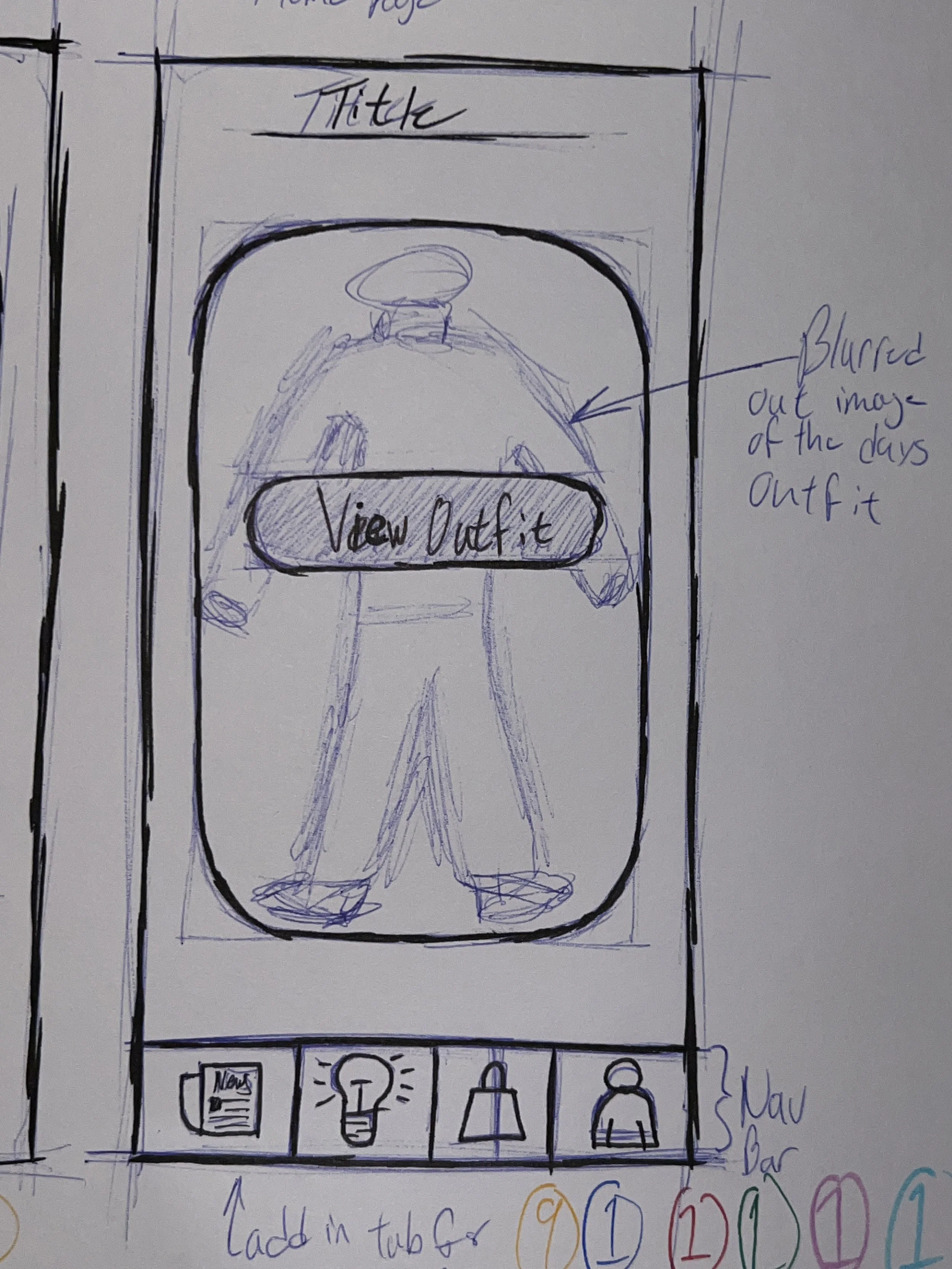 To begin the design process, I started sketching out ideas on paper. Beforehand, I researched and gained inspiration from other fashion industry apps and popular brands to determine what I wanted my screens to look like. I aimed for screens that were easy to navigate with large, visually appealing design elements, and supporting text separated from the visuals. During this sketching phase, I also began working out the onboarding process, which would involve machine vision technology to scan and note the items in the user's closet. This feature would enable the app to understand what items the user wears the most by analyzing what is in the front of their closet or on top of a section.