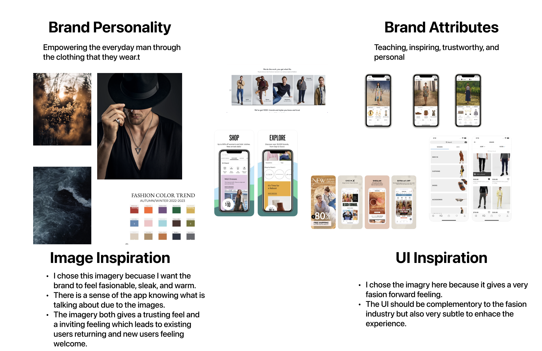 Overall, this case study highlighted the importance of empathizing with the user, defining the problem, and constantly iterating on designs until a final product is achieved. By following these principles, I was able to create a fashion app that would set itself apart from others in the industry by providing a unique and personalized experience for the user. This project allowed me to gain valuable insights into the UX design process and gave me the opportunity to develop and apply new skills and knowledge in the field.